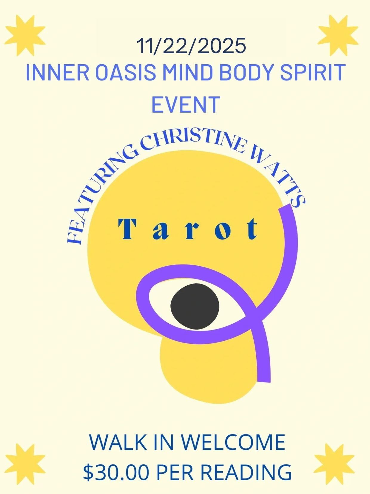 Christine has been reading at Inner Oasis to assist those lead to her to find their inner path, providing clarifying insight on our journeys to balance our Mind's, Bodies, and Spirits.
