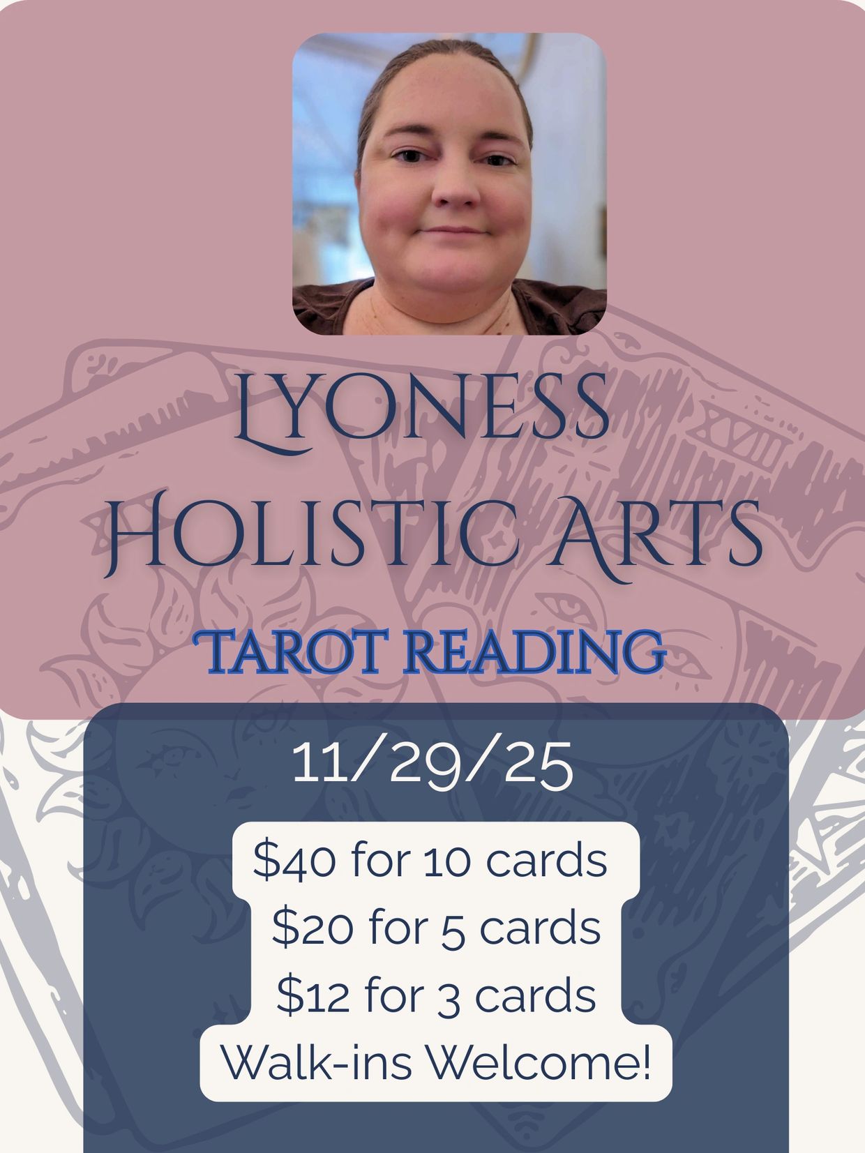 Discover the guidance you’ve been seeking with a tarot reading from Kristy at Lyoness Holistic Arts. Each session offers compassionate insight into life’s questions, helping you find clarity, direction, and empowerment on your journey. Step forward with confidence, supported by the wisdom of the cards.