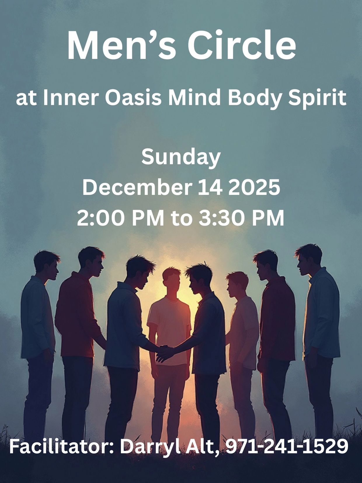 Join us for a MENS ONLY workshop. A place to find connection and support. Inner Oasis Mind Body Spirit LLC is honored to work with Darryl Alt.